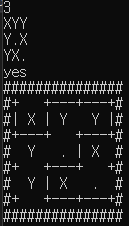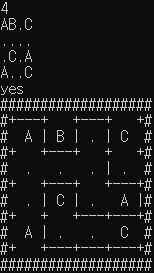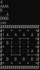만약 조건을 만족하는 국경이 존재하지 않는다면 첫 번째 줄에 "no" 를 출력하고 더 이상 아무것도 출력하지 않아야 합니다. 조건을 만족하는 국경이 존재한다면 첫 번째 줄에 "yes" 를 출력하고